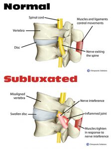 A vertebral subluxation is defined as: a misalignment of one or more of the vertebrae in the spinal column, which causes alteration of nerve functions and interference to the transmission of mental impulses, resulting in a lessening of the body’s innate ability to express its maximum health potential. Also referred to as spinal nerve interference.